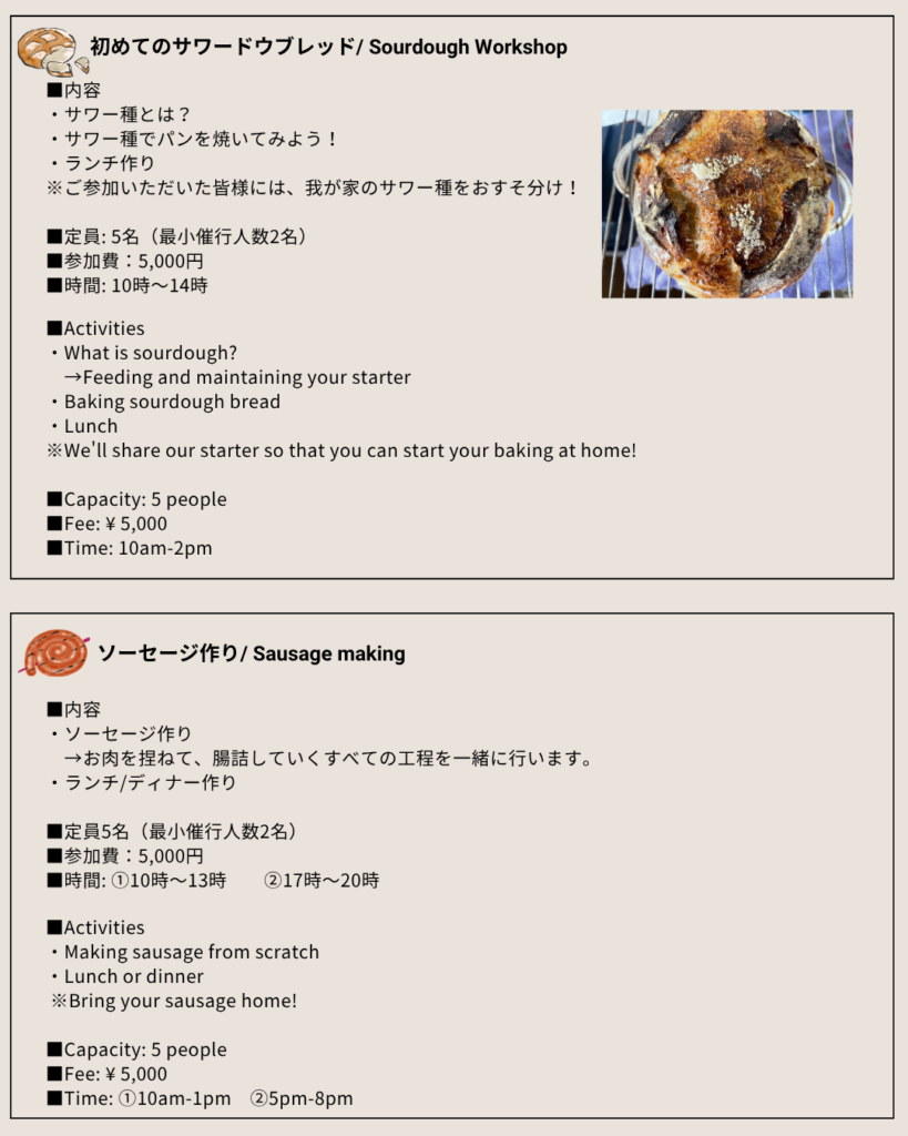 ・基本的に未就学児の参加は無料ですが、食事は保護者の方とシェアして頂きます。